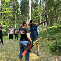 Anschließend durften alle Teilnehmer auf der Übungsstation sowie auf der ersten Bogenparkstation ihre Treffsicherheit testen. Ortsvorsitzende Andrea Egner überreichte Frau Zandt abschließend ein kleines Geschenk als Wertschätzung für die ausführliche Information und die Einführung.