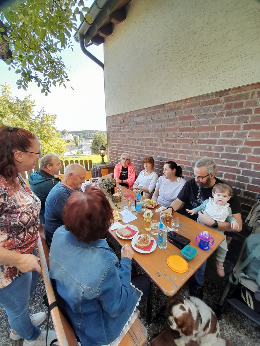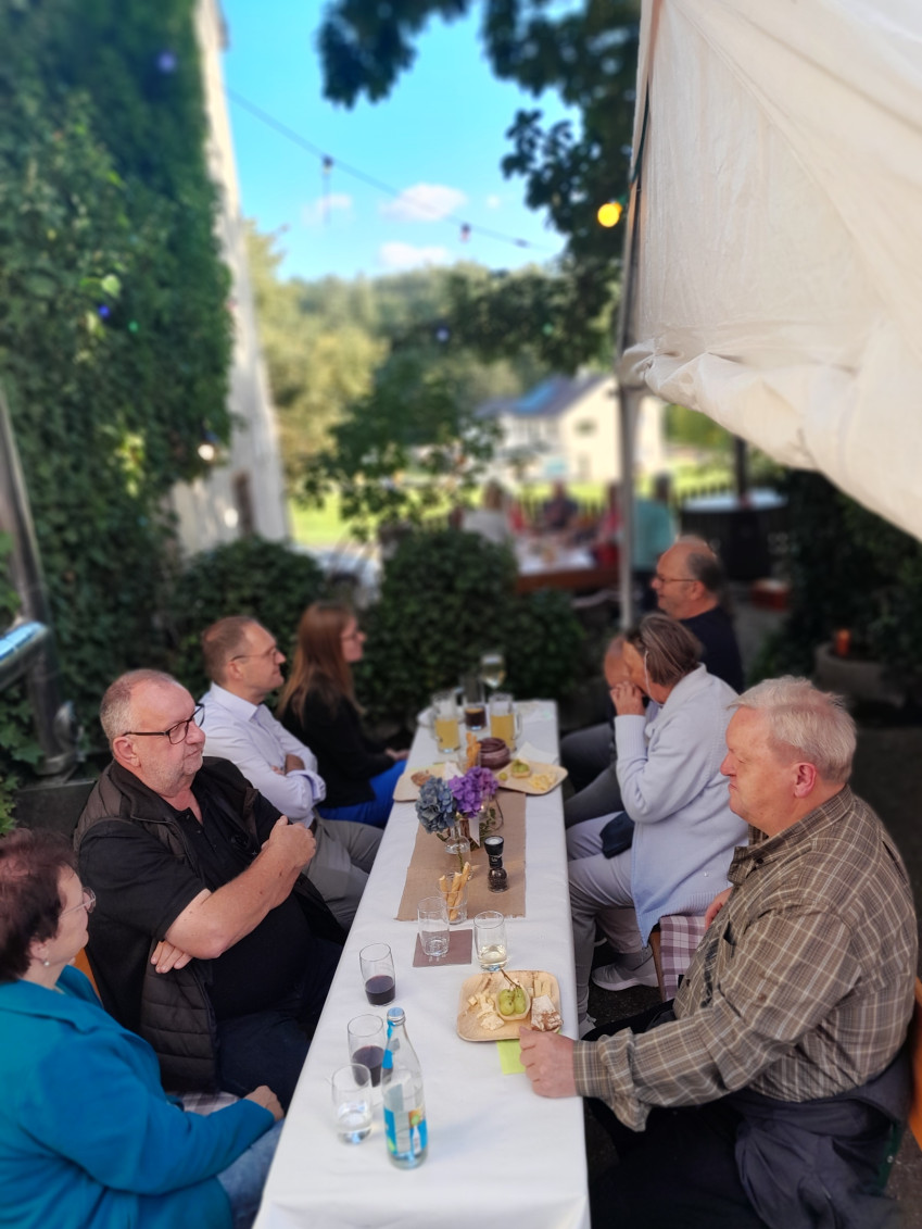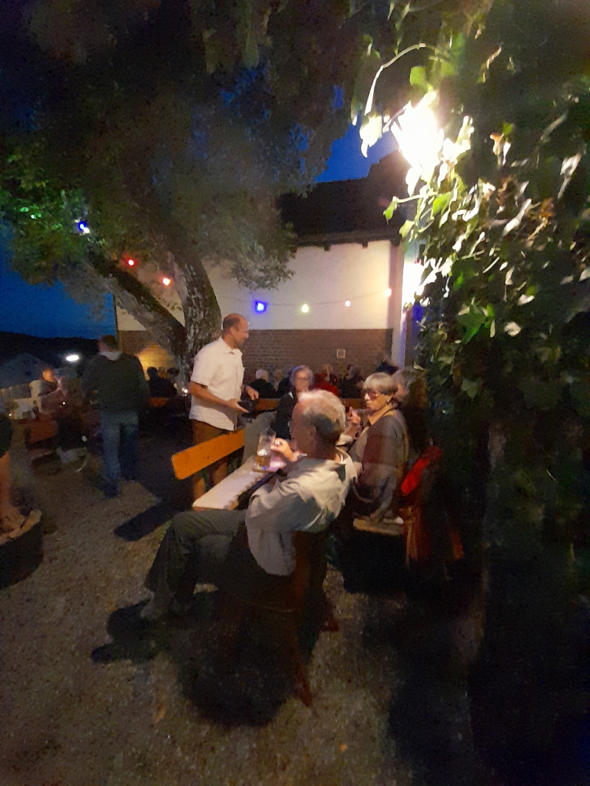 Stimmungsvolles Weinfest lockt zahlreiche Gäste Was als gemütlicher Spätsommerabend begann, entwickelte sich rasch zu einem stimmungsvollen Fest. Der Einladung des Ortsvereins folgten zahlreiche Gäste – so viele, dass kurzerhand weitere Tische herbeigeschafft werden mussten, um allen einen Platz unter freiem Himmel zu bieten. In entspannter Atmosphäre wurde geschlemmt, gelacht und genossen. Kulinarisch ließ das Fest keine Wünsche offen: Ob Burgteller, Steinhauerplatte oder die herzhafte G’Lustplatte – für jeden Geschmack war etwas dabei. Natürlich stand der Wein im Mittelpunkt: Das Angebot reichte von spritzigem Riesling trocken über samtigen Rotwein mild bis hin zum lieblichen Tropfen, der gerade bei den süßen Gaumen besonders gut ankam.